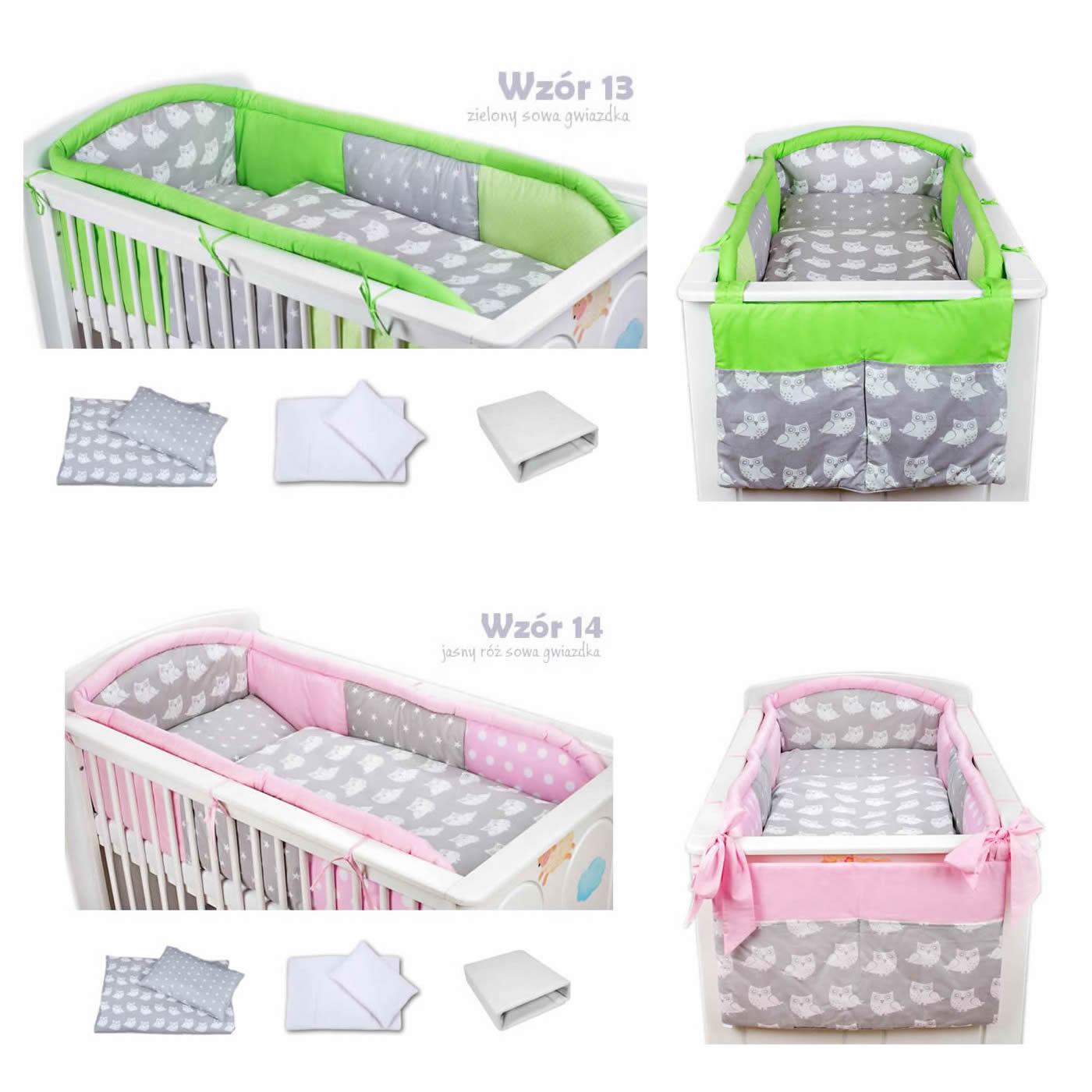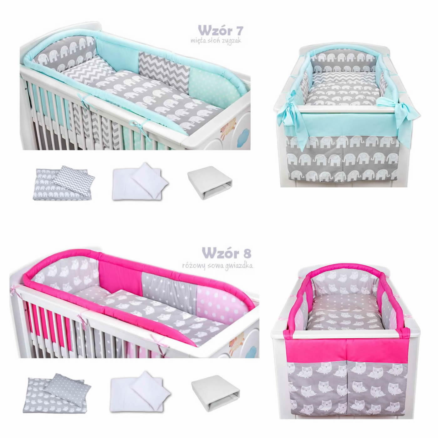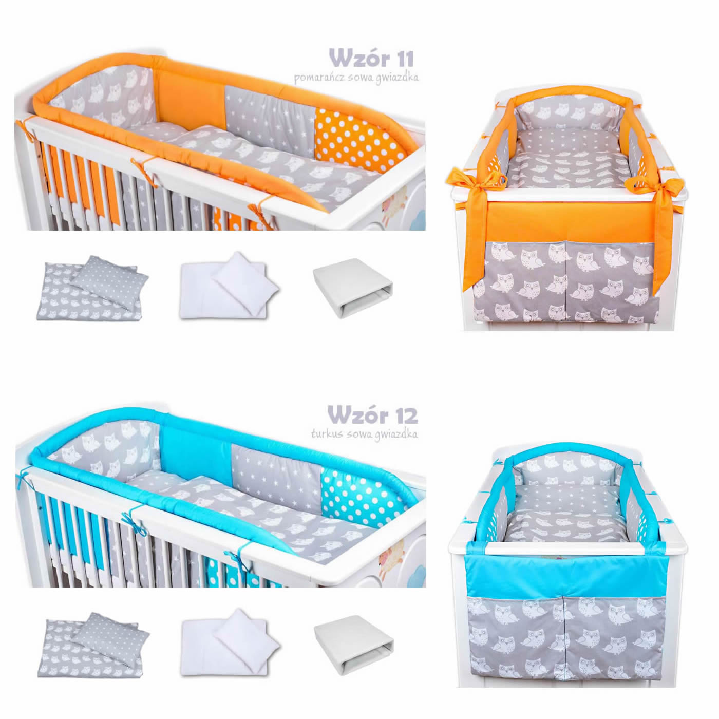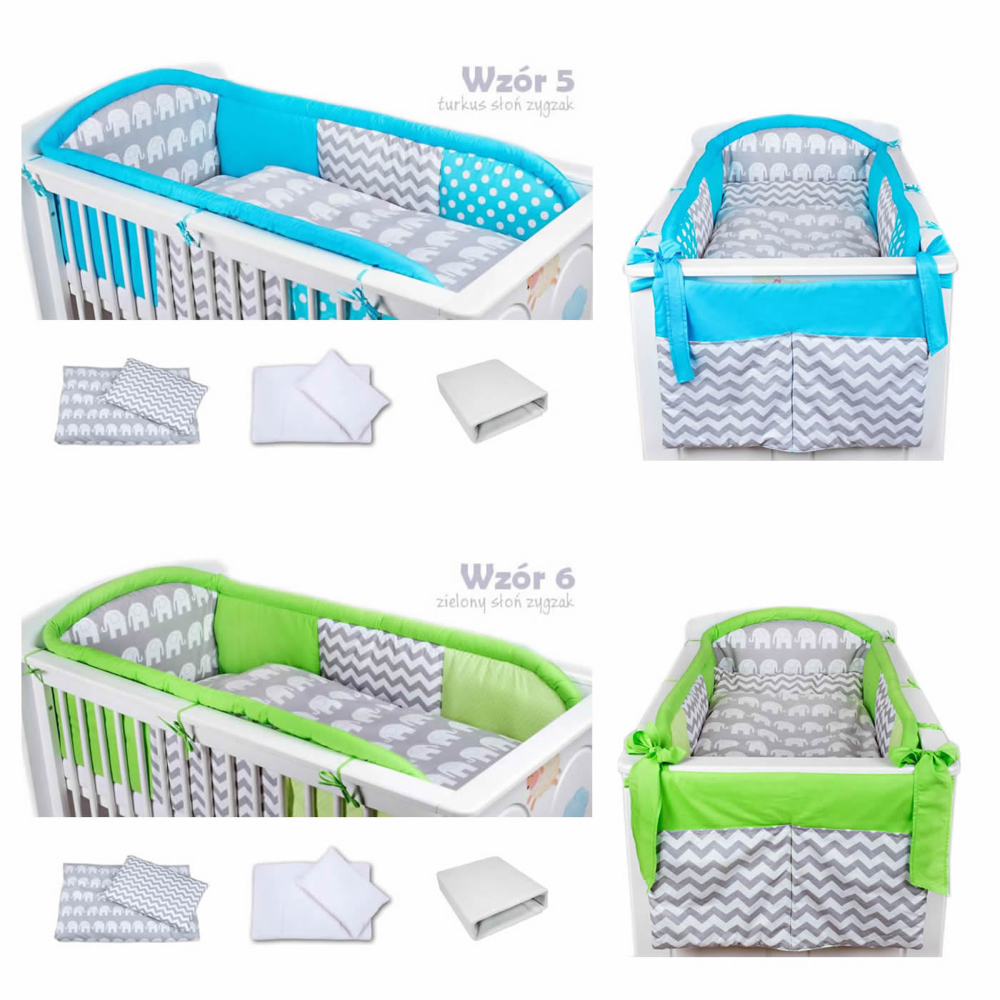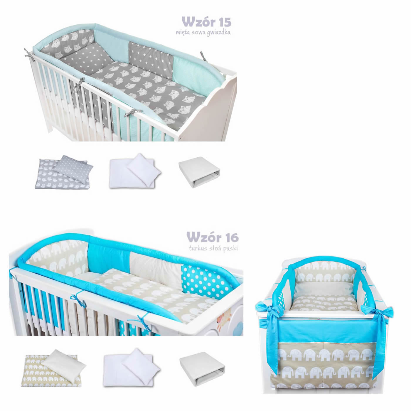 7 - elements bedding set for crib with long protector collection COLORS turquoise