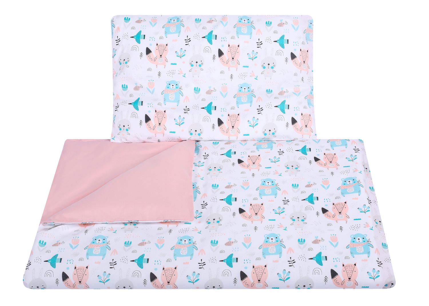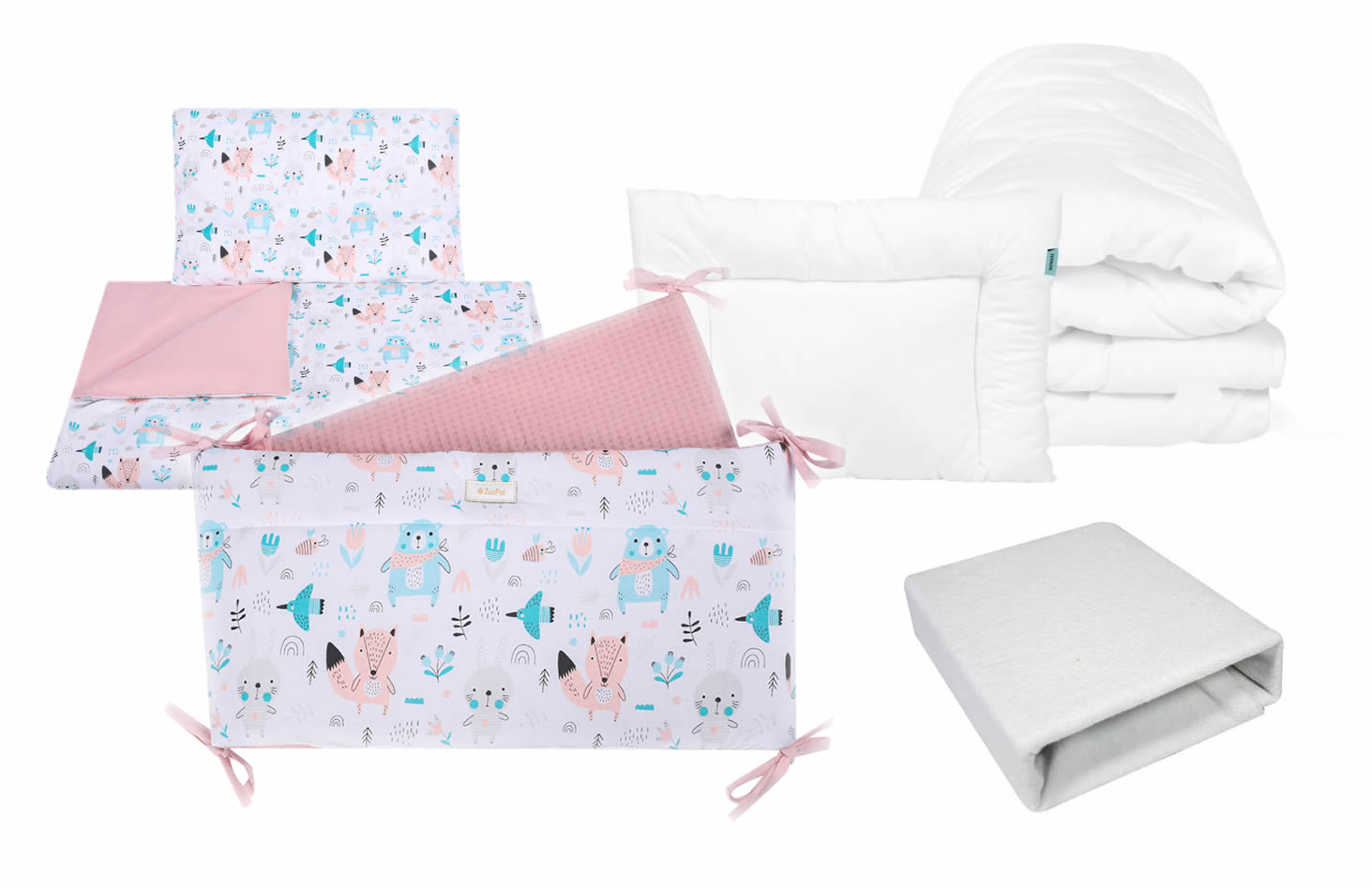 Zestaw pościel dziecięca do łóżeczka z ochraniaczem i wypełnieniem- lisek różowy dla dziewczynki