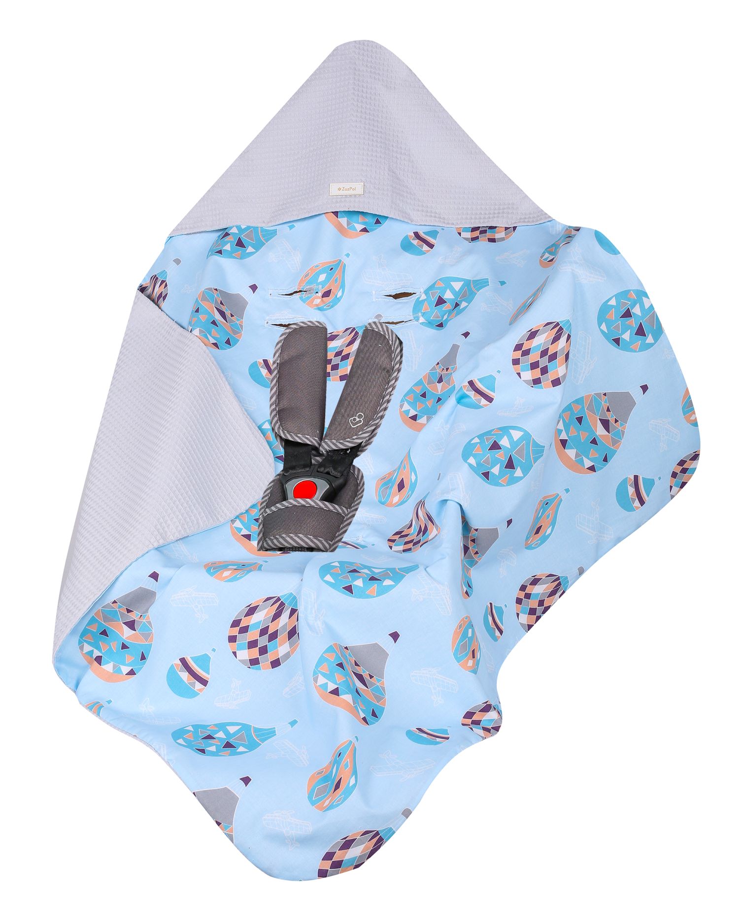 Kocyk do nosidełka, fotelika - wzór balony na niebieskim niebie dla chłopca - kolekcja WAFER