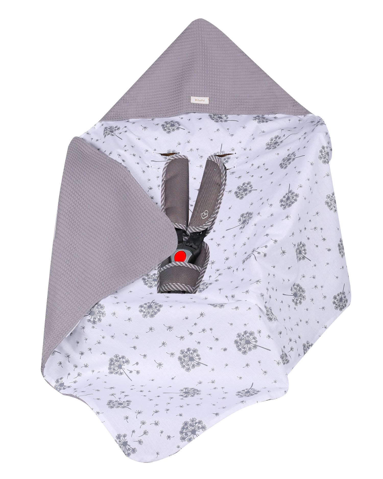 Kocyk do nosidełka, fotelika - wzór szare dmuchawce na białym - kolekcja WAFER