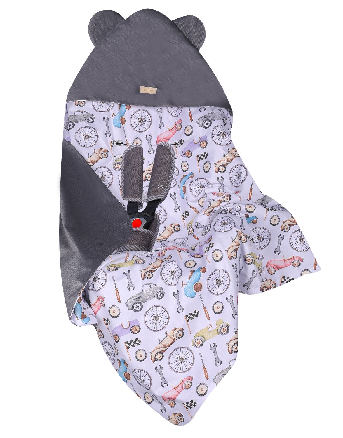 Kocyk - otulacz do nosidełka, fotelika dla chłopca samochody