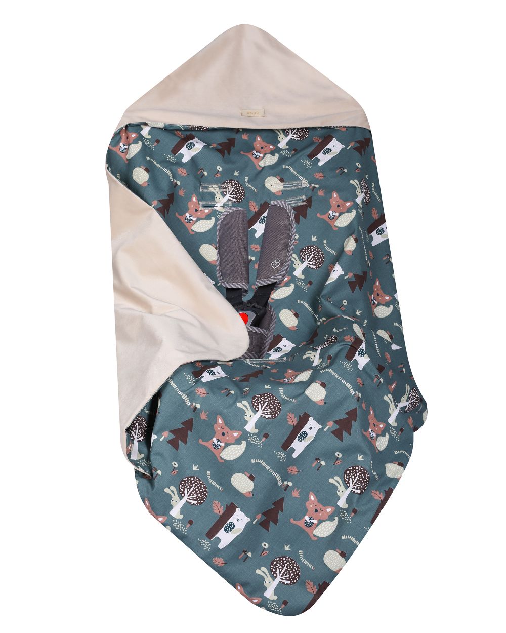 Kocyk - otulacz do nosidełka lub fotelika dla chłopca - cappucino liski