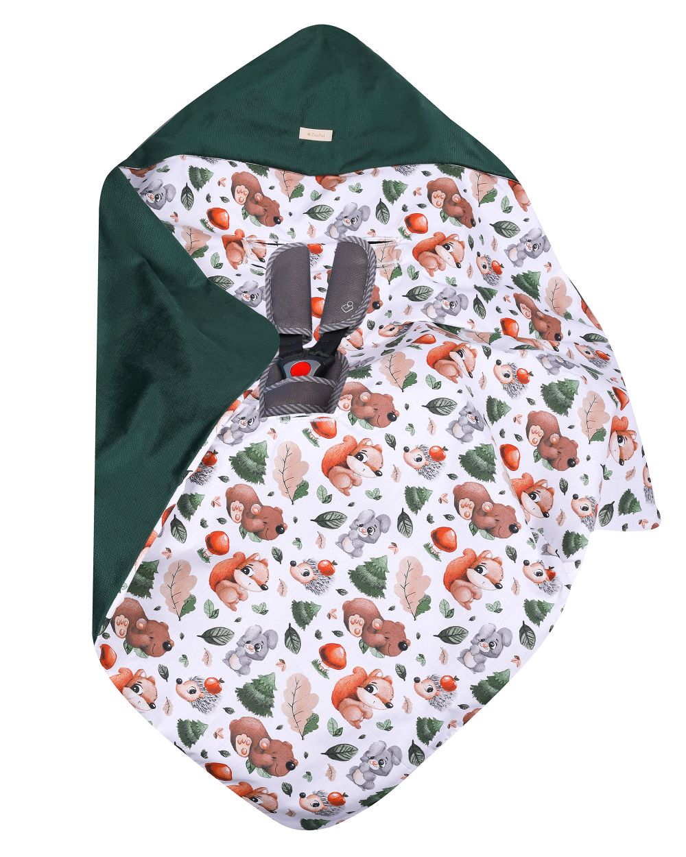 Kocyk - otulacz do nosidełka lub fotelika dla chłopca i dziewczynki ciemna zieleń