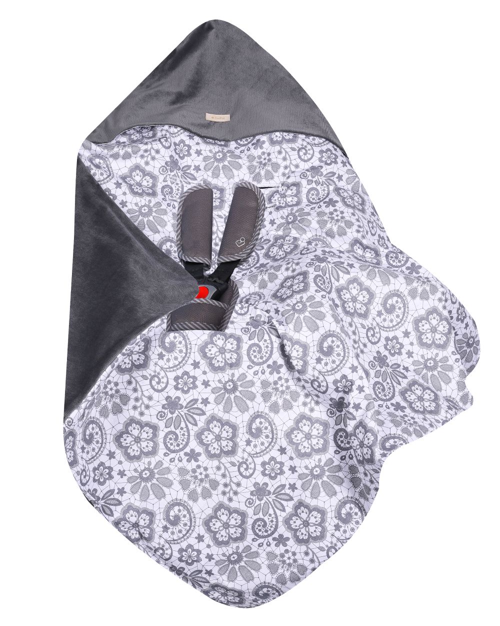 Kocyk - otulacz do nosidełka lub fotelika dla chłopca i dziewczynki ciemny szary