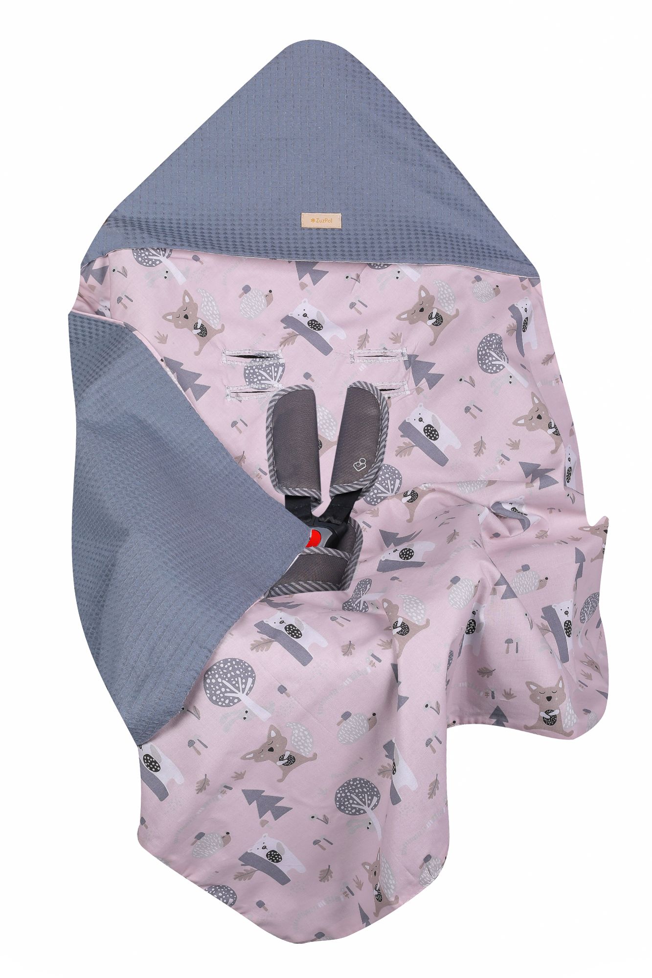 Kocyk - otulacz do nosidełka lub fotelika dla dziewczynki lub chłopca szary z liskiem