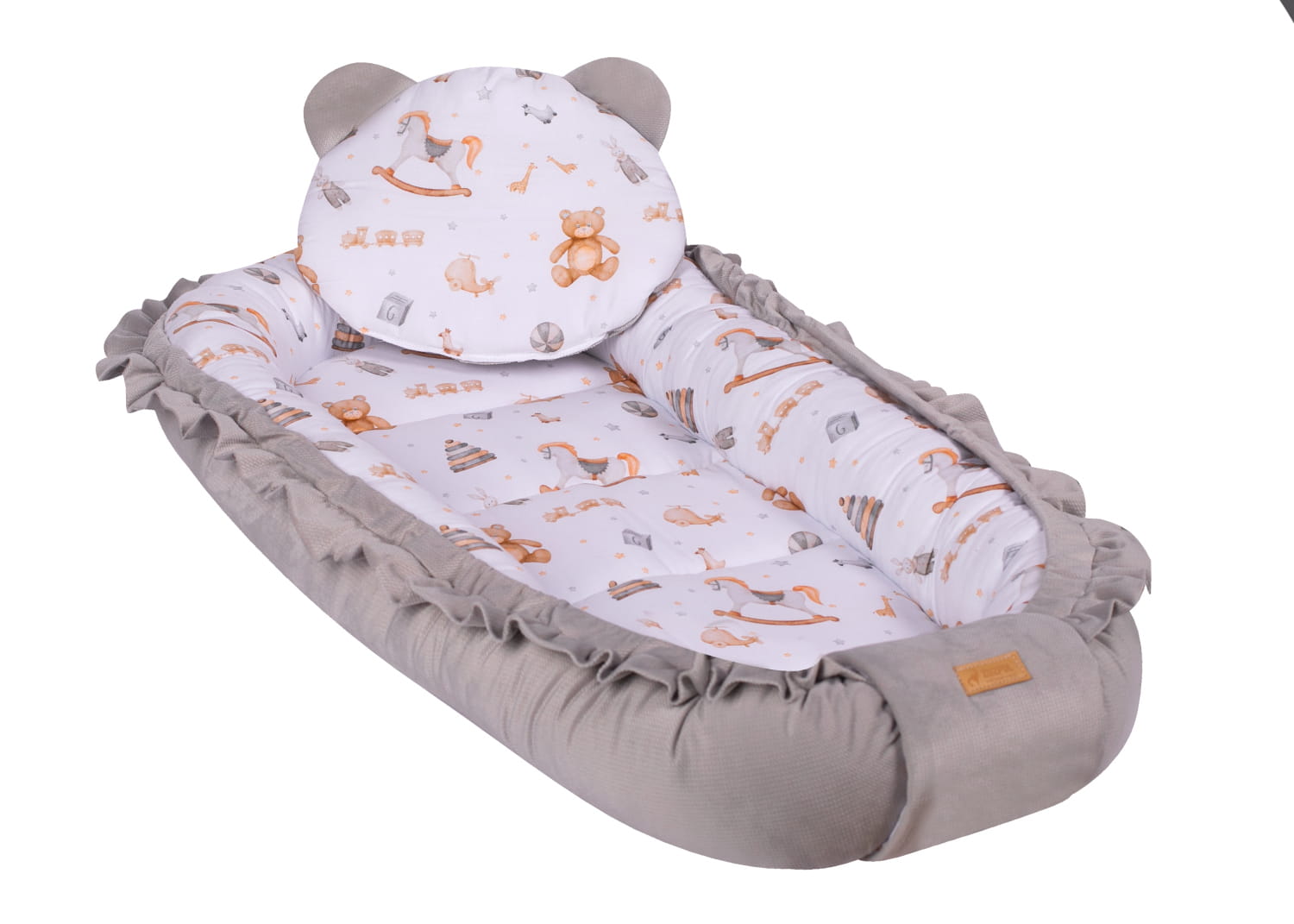 Kocyk z podusią dla niemowląt dla chłopca dziewczynki szary