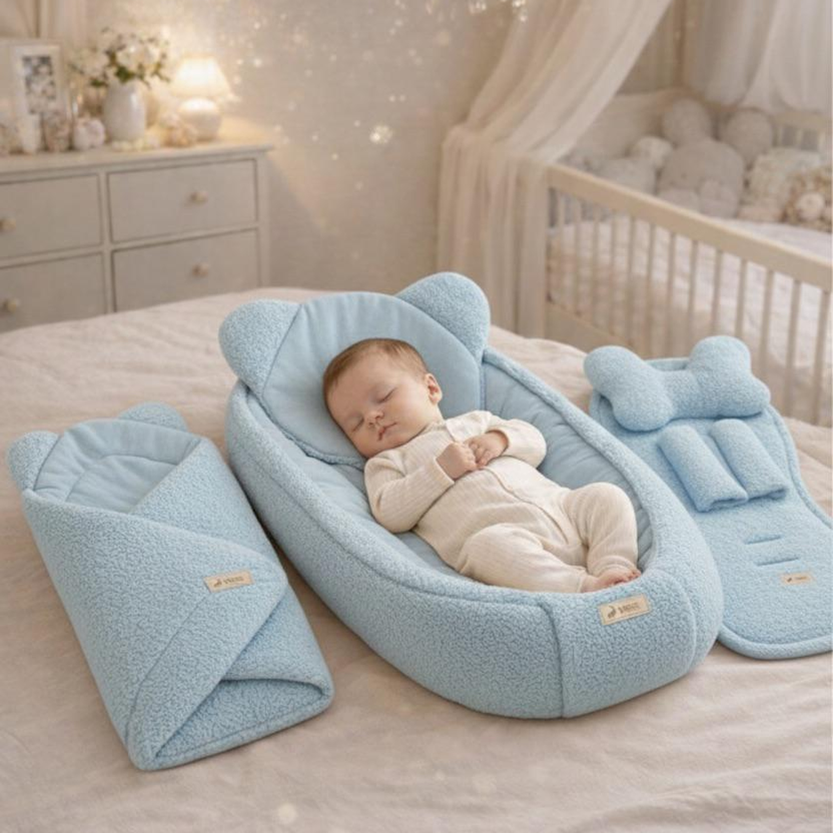 Kokon niemowlęcy dla dziecka dla niemowląt z podusią Boucle niebieski