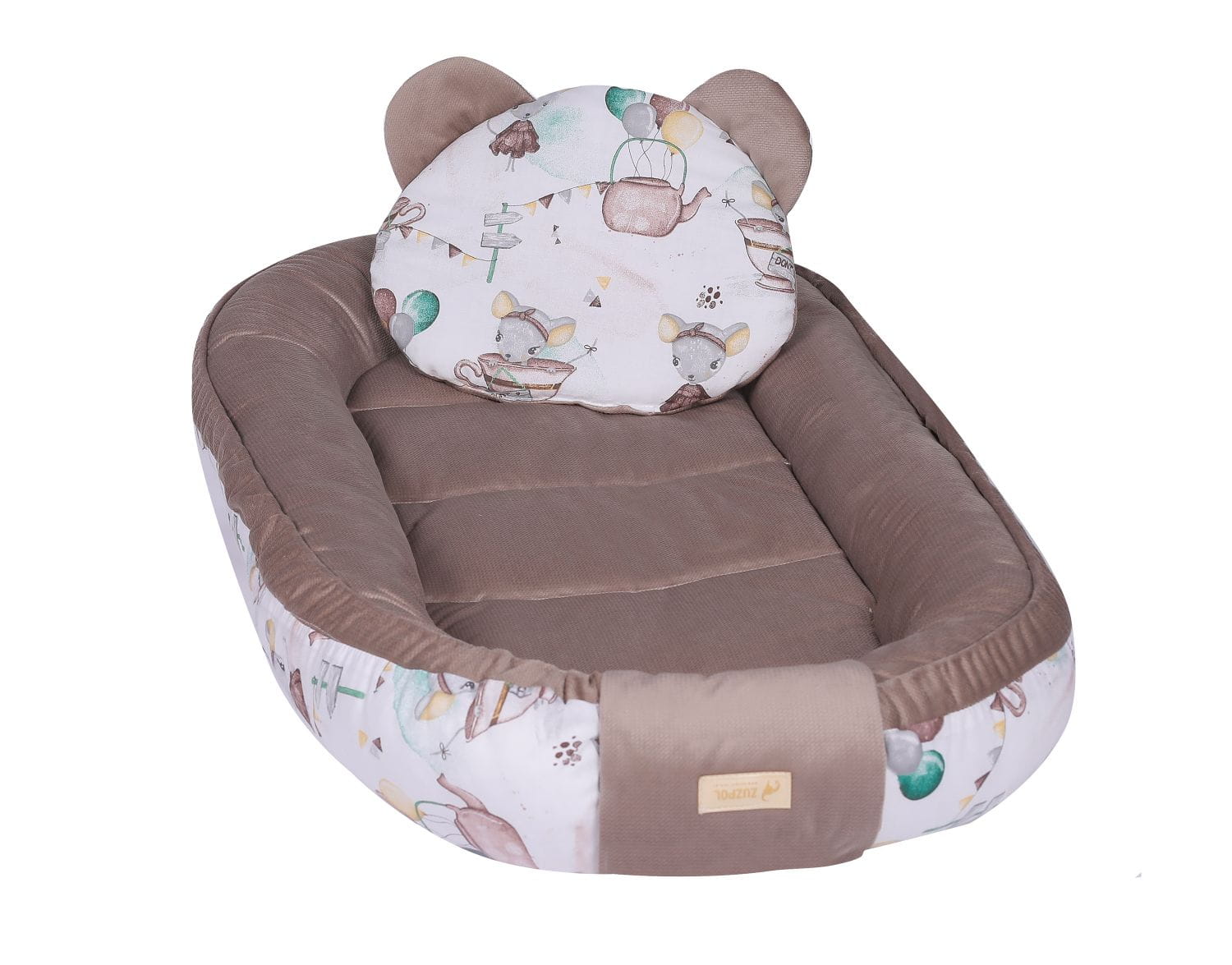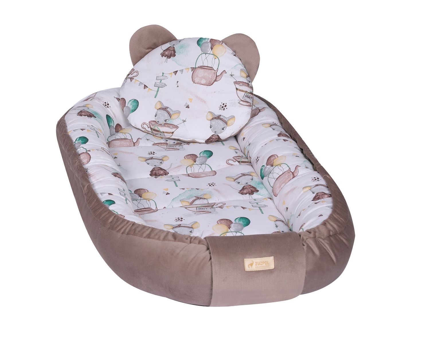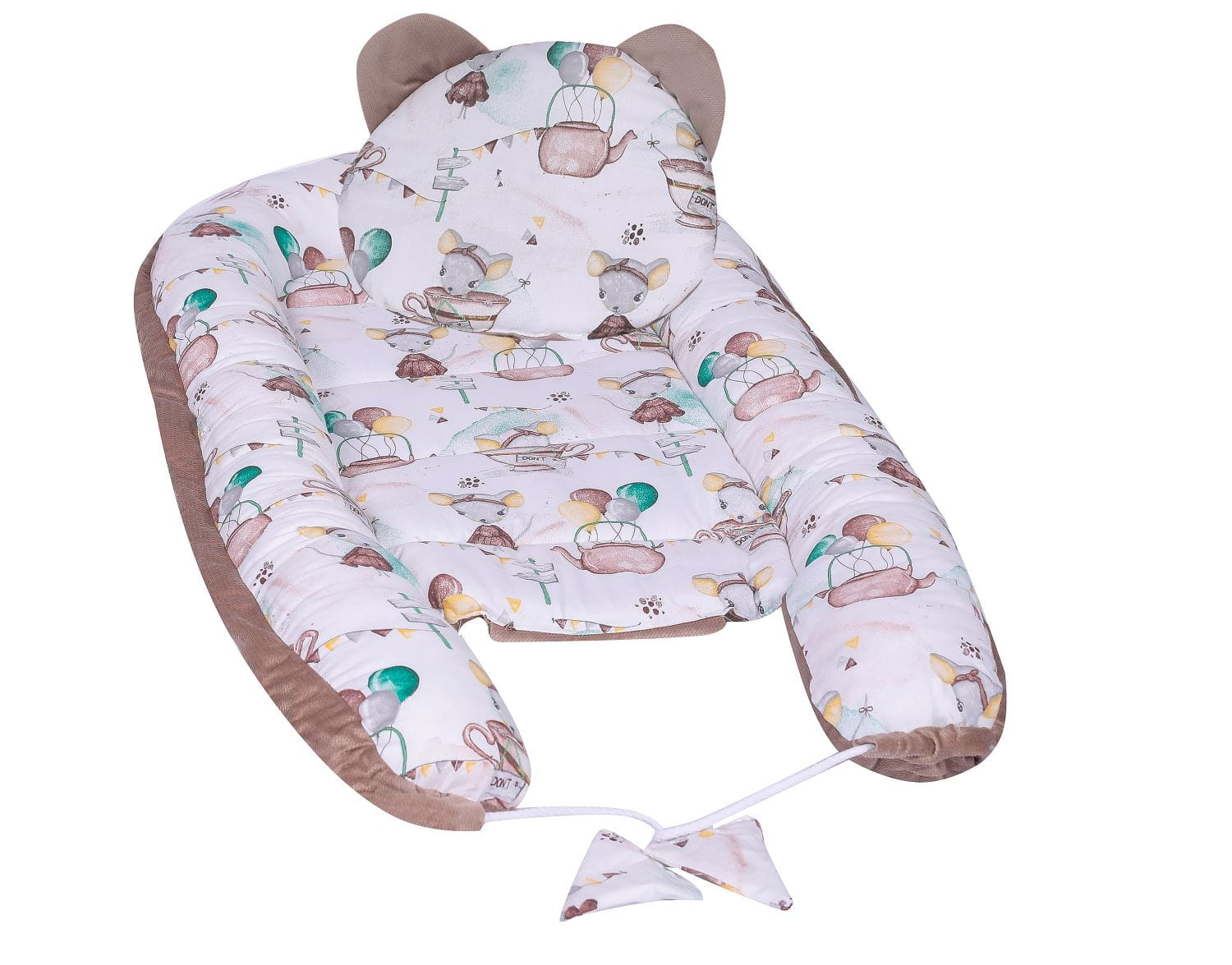 Kokon niemowlęcy z podusią dla chłopca dziewczynki myszka capuccino