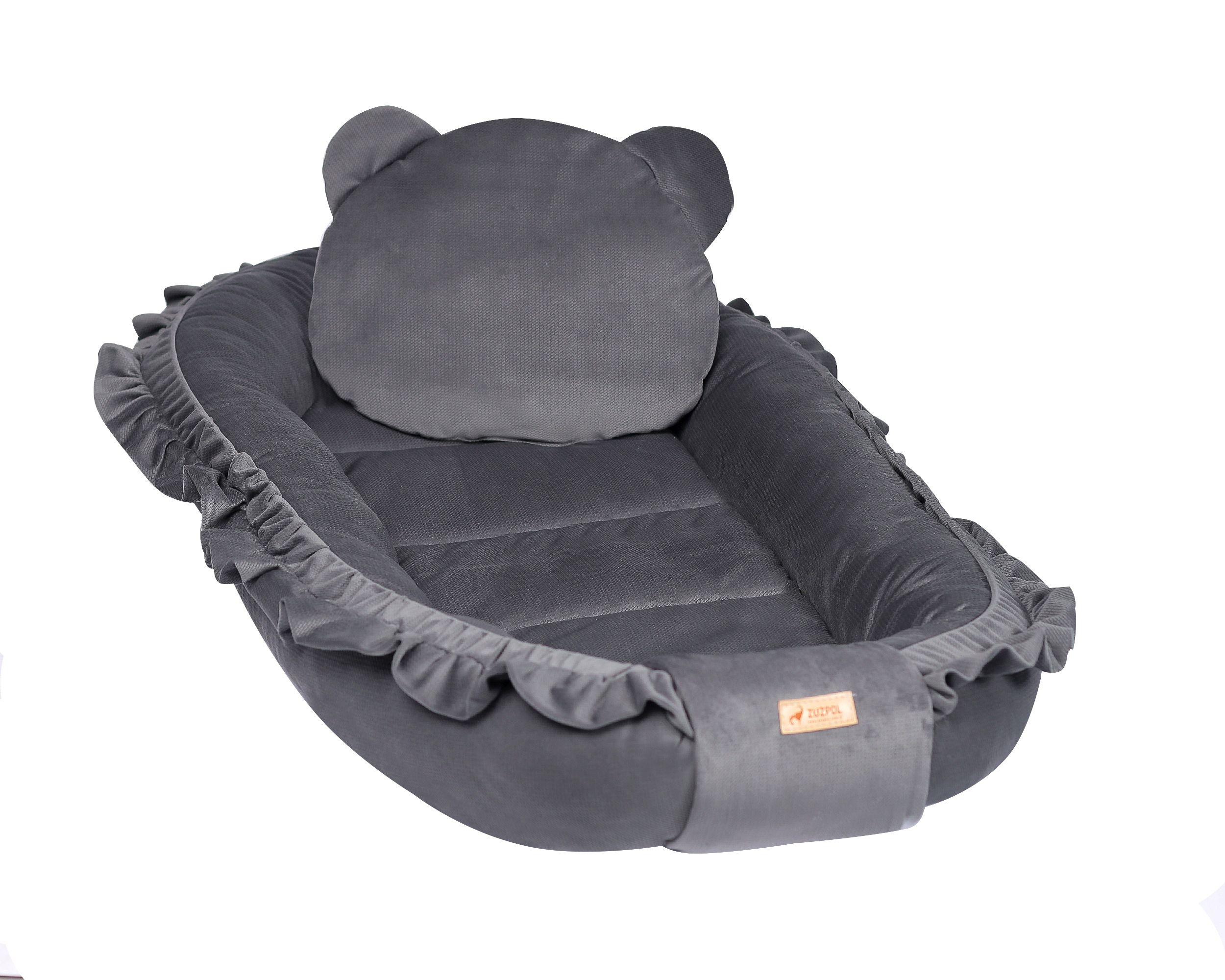 Kokon niemowlęcy z podusią dla chłopca dziewczynki szary