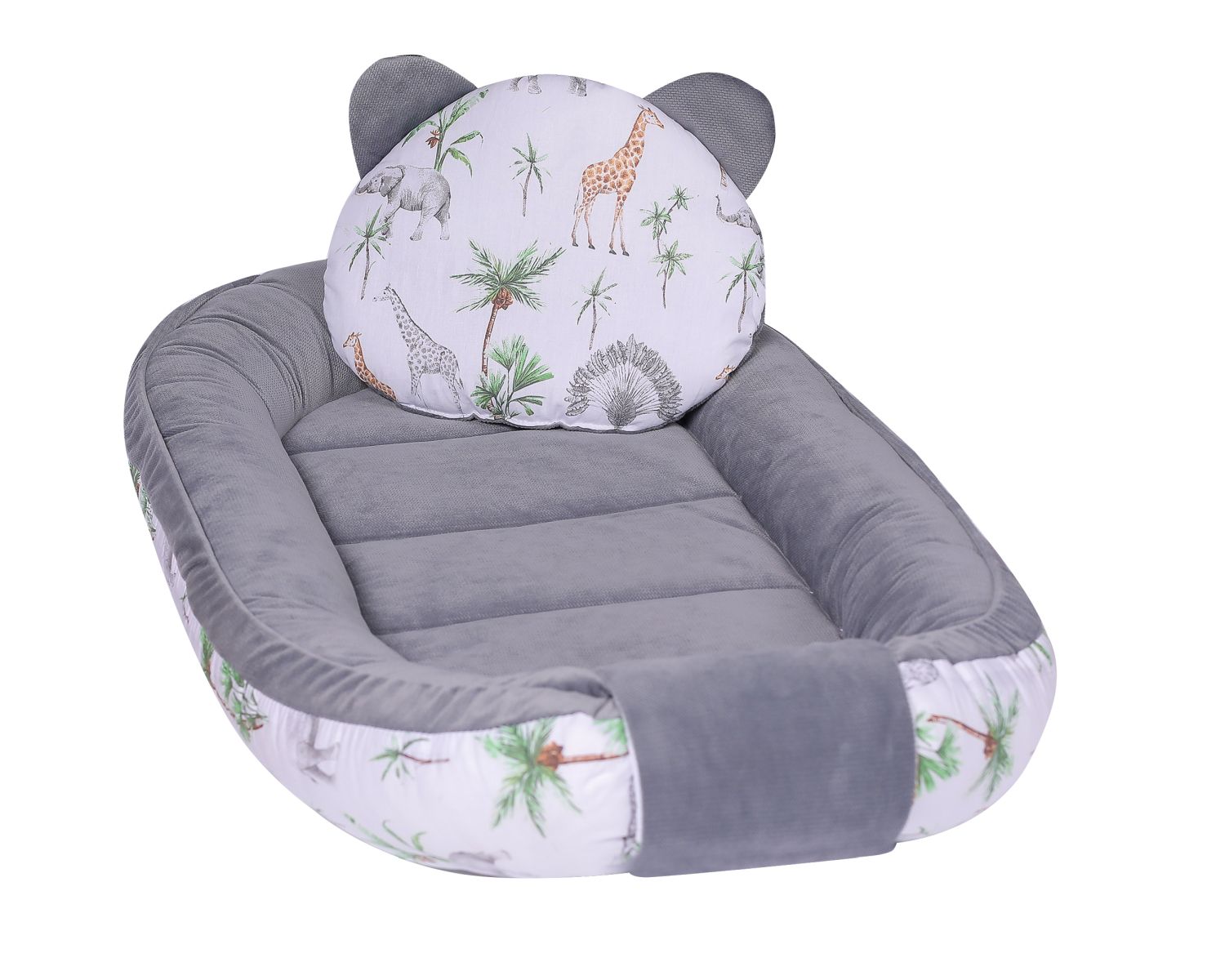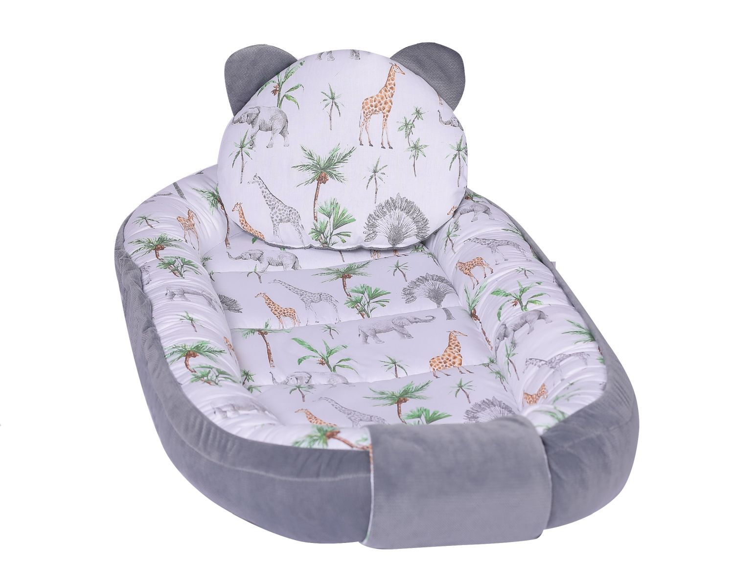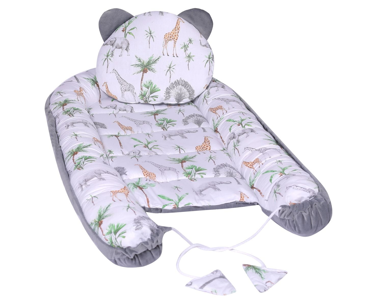 Kokon niemowlęcy z podusią dla chłopca dziewczynki żyrafki szare