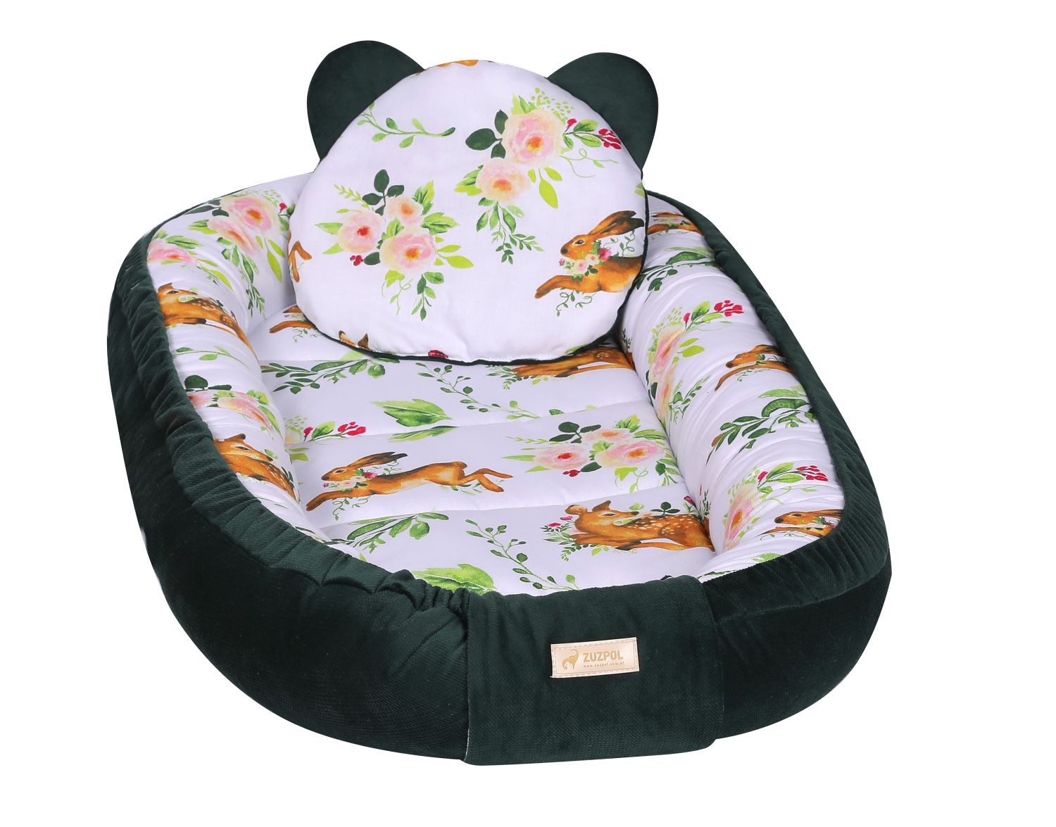 Kokon niemowlęcy z podusią dla dziewczynki chłopca butelkowa zieleń