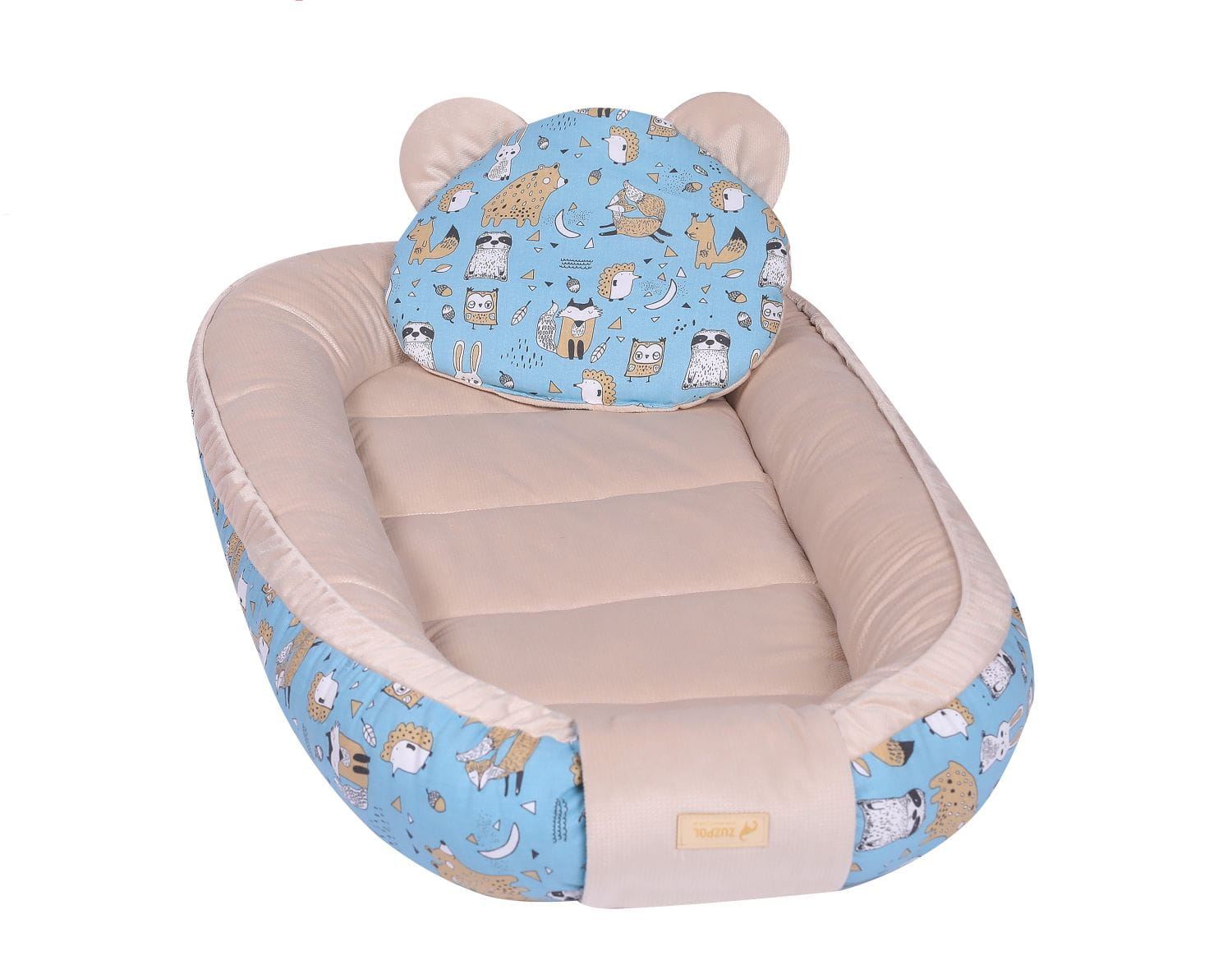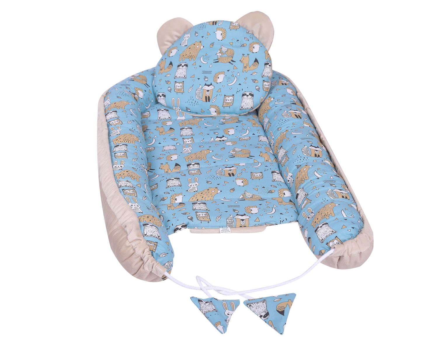 Kokon niemowlęcy z podusią dla dziewczynki chłopca niebieski zwierzęta