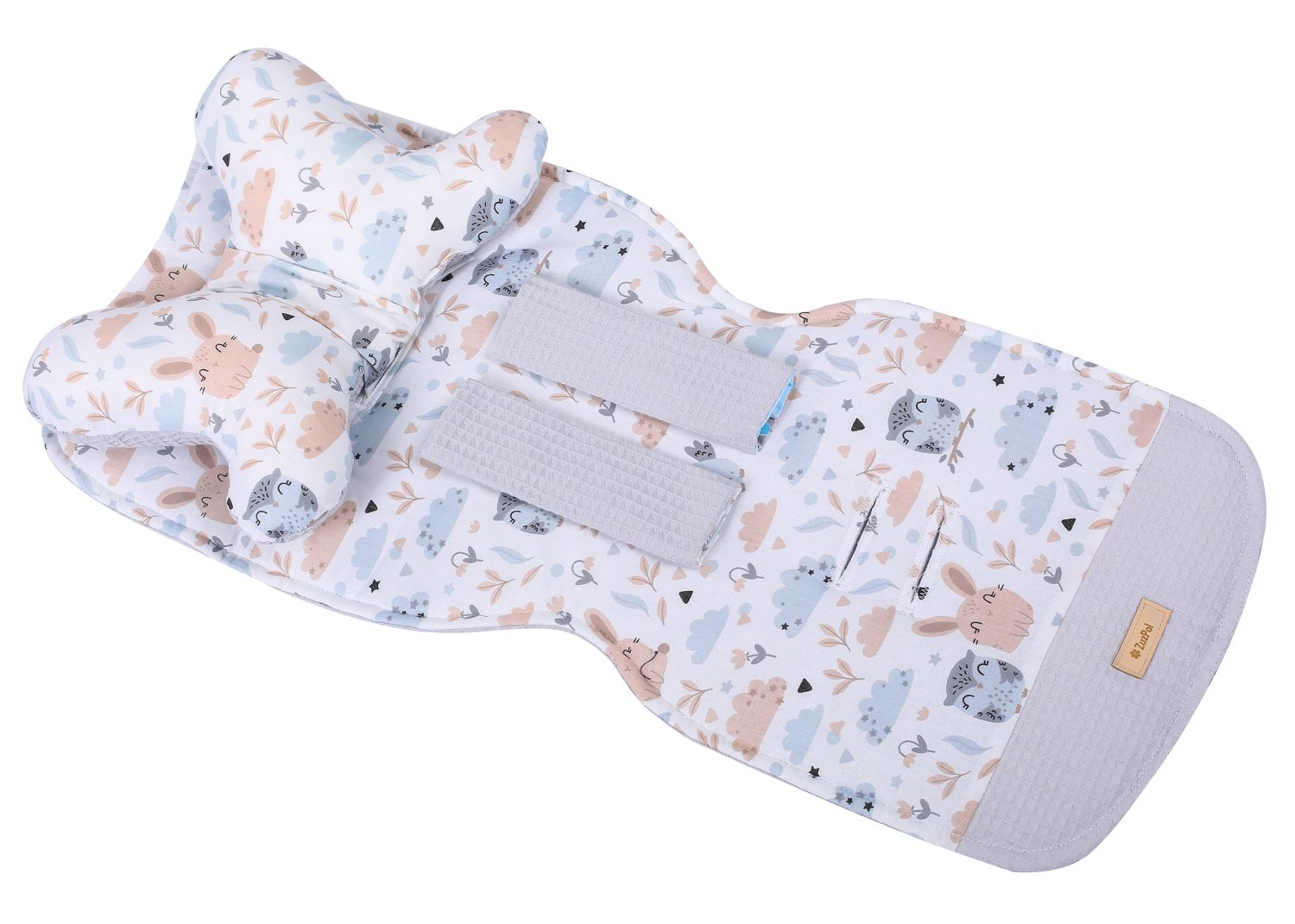 Mata wkładka do wózka - wzór leśne zwierzęta sowa i zajączek z szarym - kolekcja WAFER