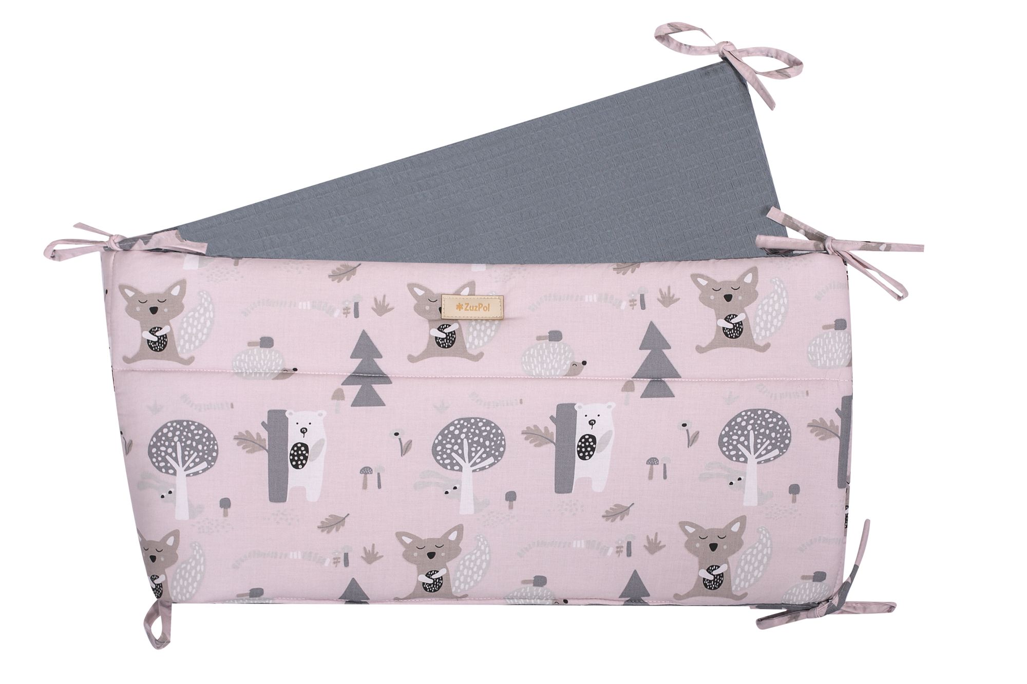 Ochraniacze do łóżeczka dla dziewczynki lub chłopca szary z liskiem
