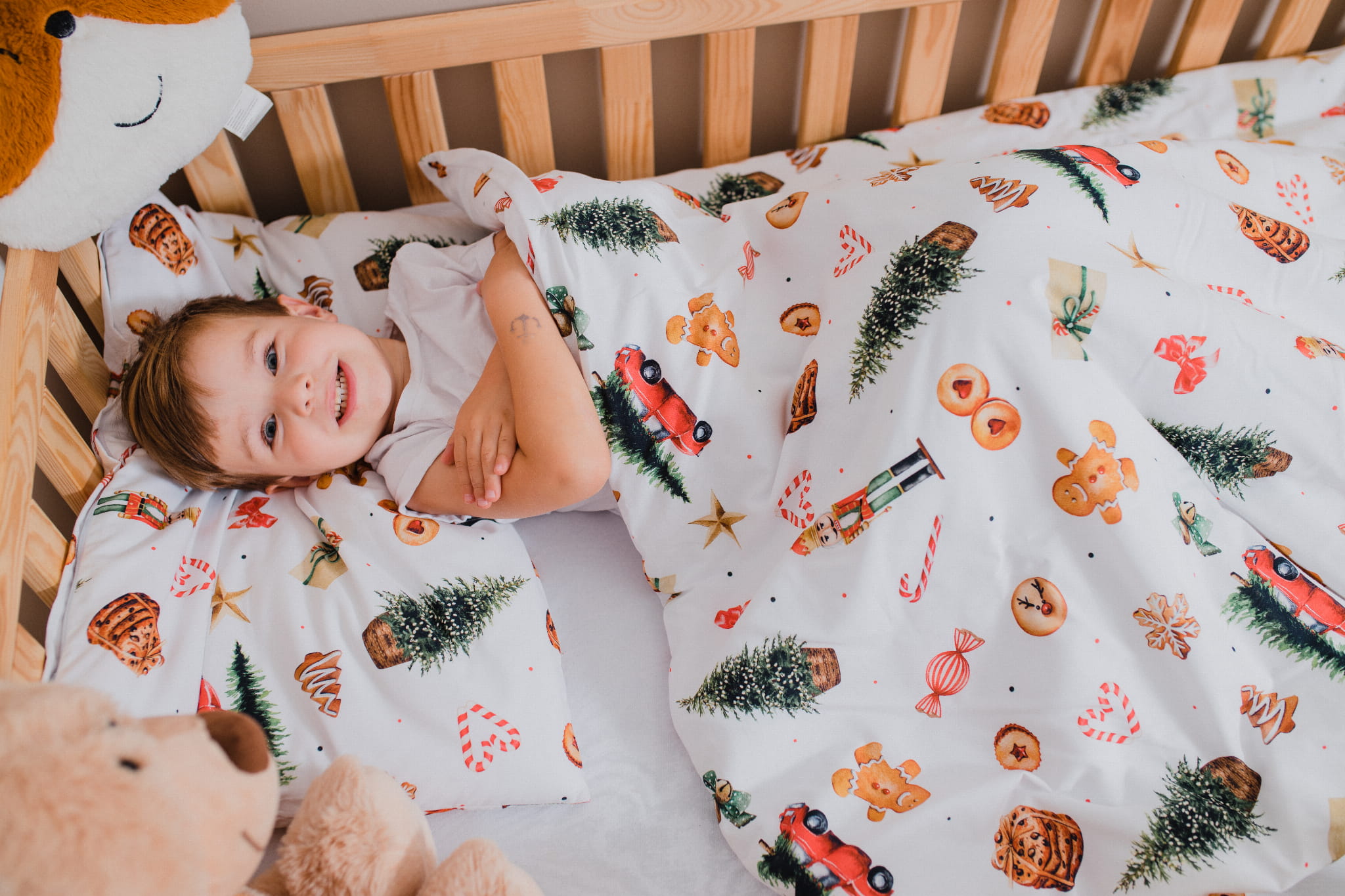 Pościel do łóżeczka dla dziecka na święta świąteczna wzór świąteczny CHRISTMASS
