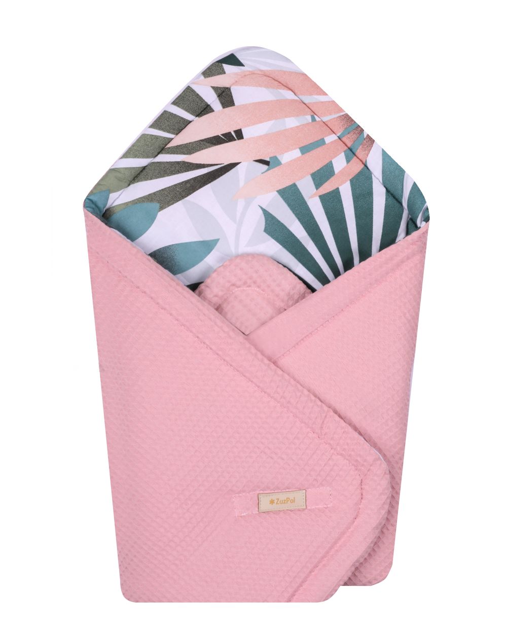 Rożek niemowlęcy dla dziecka dla dziewczynki różowy liście palmy