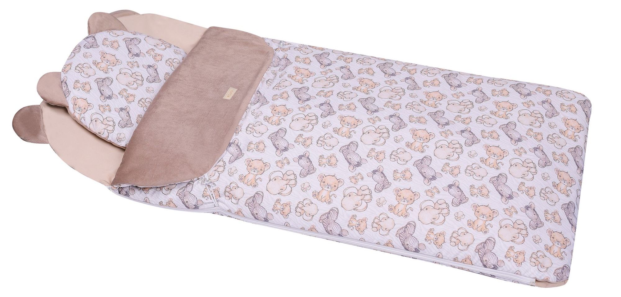 Śpiworek do spania dziecięcy z podusią do przedszkola dla chłopca dla dziewczynki cappucino misie słoniki