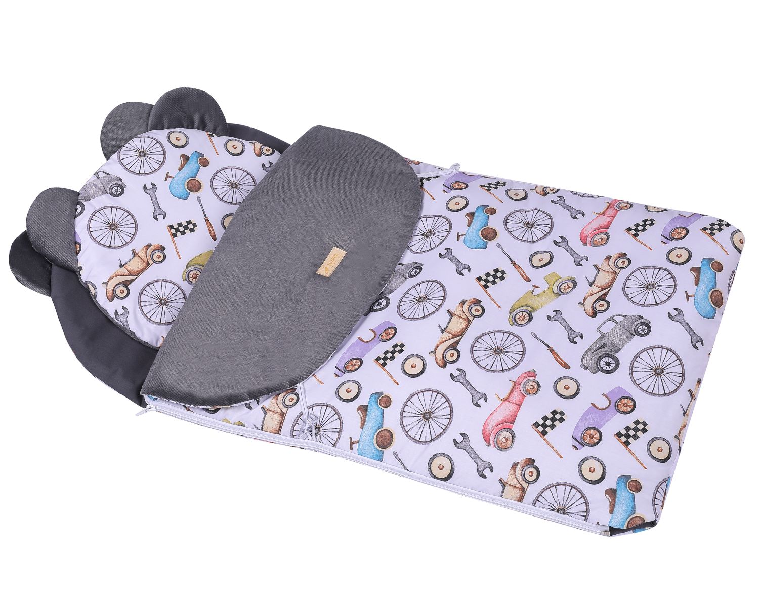 Śpiworek do spania dziecięcy z podusią do przedszkola dla chłopca szary samochody