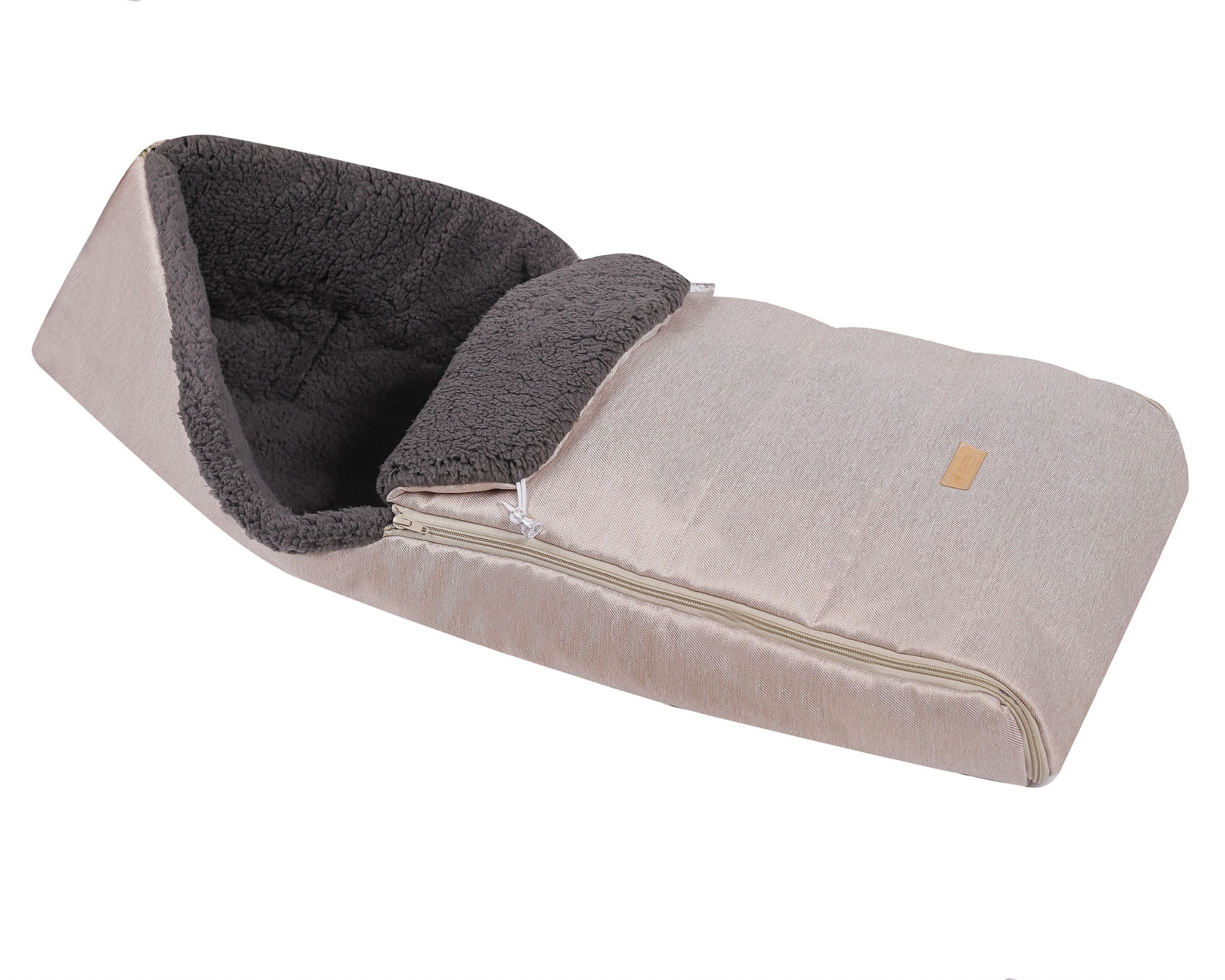 Śpiworek zimowy ciepły do wózka sanek z MUFKĄ beż melanż TEDDY grafit 90 cm 110 cm 120 cm