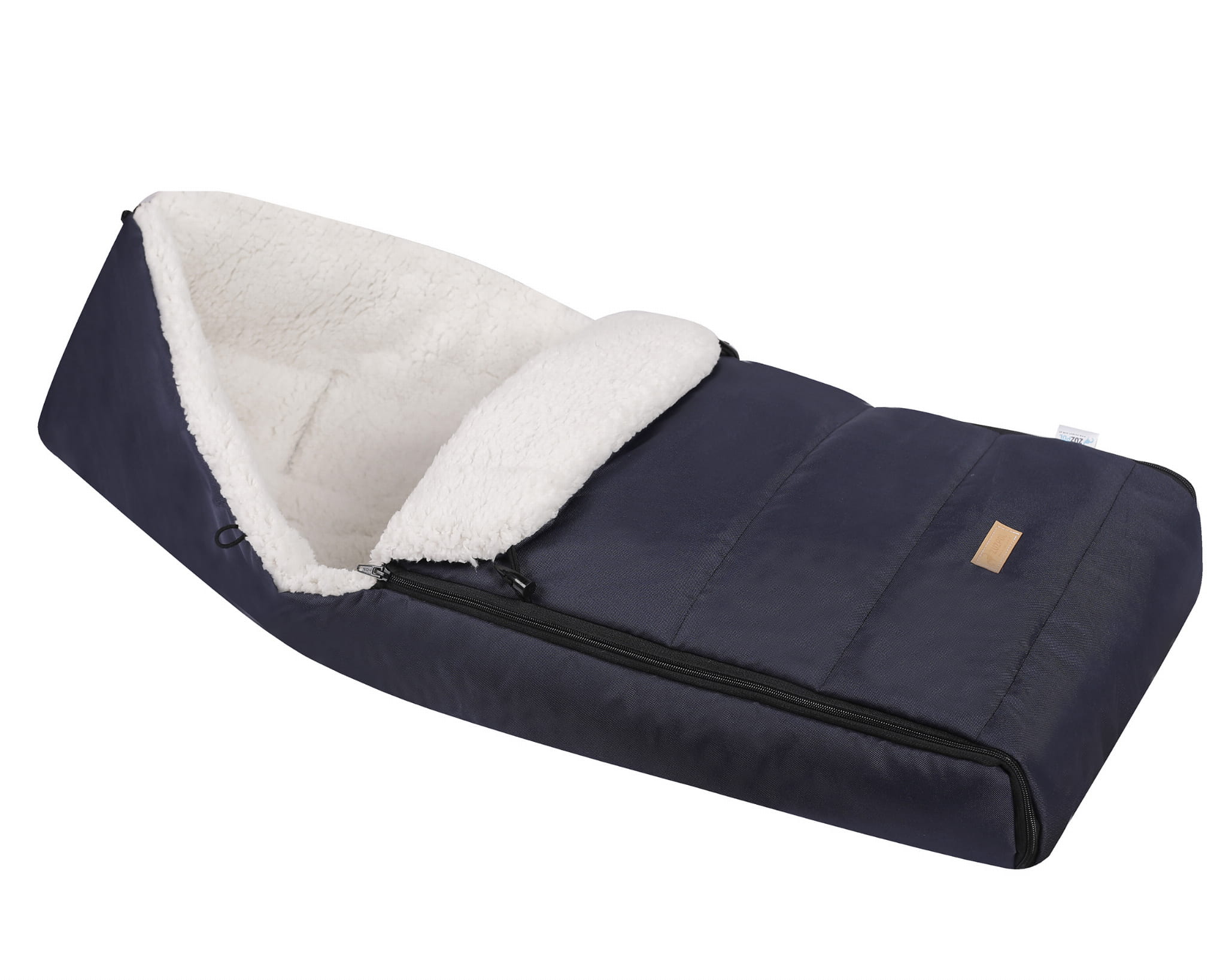 Śpiworek zimowy ciepły do wózka sanek z MUFKĄ granat TEDDY ecri 90 cm 110 cm 120 cm