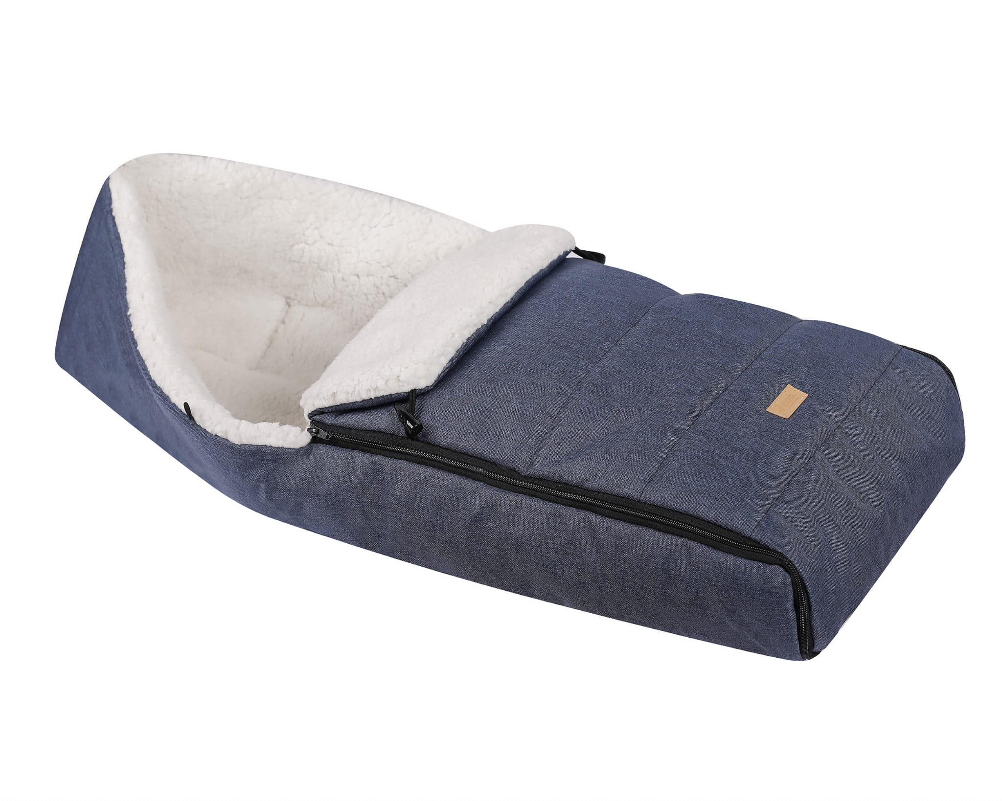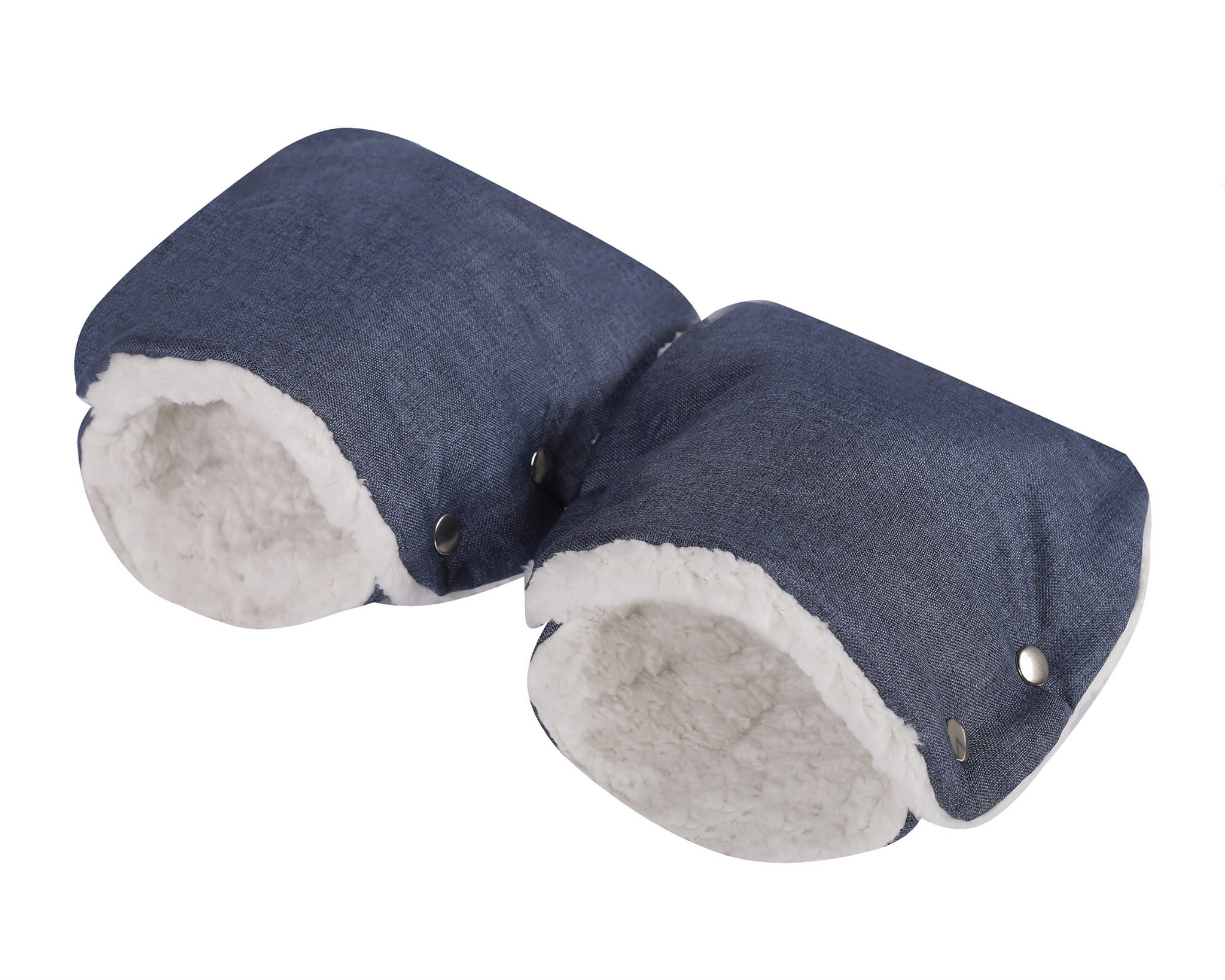 Śpiworek zimowy ciepły do wózka sanek z MUFKĄ jeans TEDDY ecri 90 cm 110 cm 120 cm