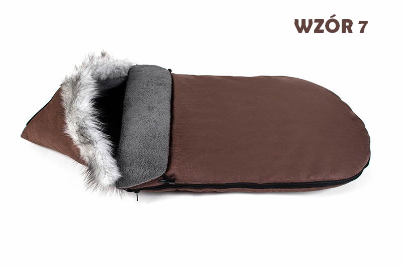 Śpiworek zimowy na zimę do wózka z futerkiem z liska z polarem mocno ciemny brąz